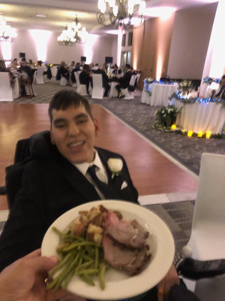 This wedding day dinner was inside a reception hall in Cleveland, Ohio. I was a groomsman in my sister’s wedding which was a beautiful celebration! The main course consisted of green beans, red potatoes and prime rib. The green beans were fresh and blanched to retain their natural, vibrant green color. Then, they were cooked just enough to remain a bit of crunch. The red potatoes were not too salty or starchy. Also, they were cooked just enough to make them soft and fork ready. The prime rib was cooked to a perfect medium rare and was not too fatty. It was juicy, flavorful and melted like butter in your mouth. This fancy wedding dinner was outrageous and enjoyed by all. The wedding had a great atmosphere and will be remembered for a long time!